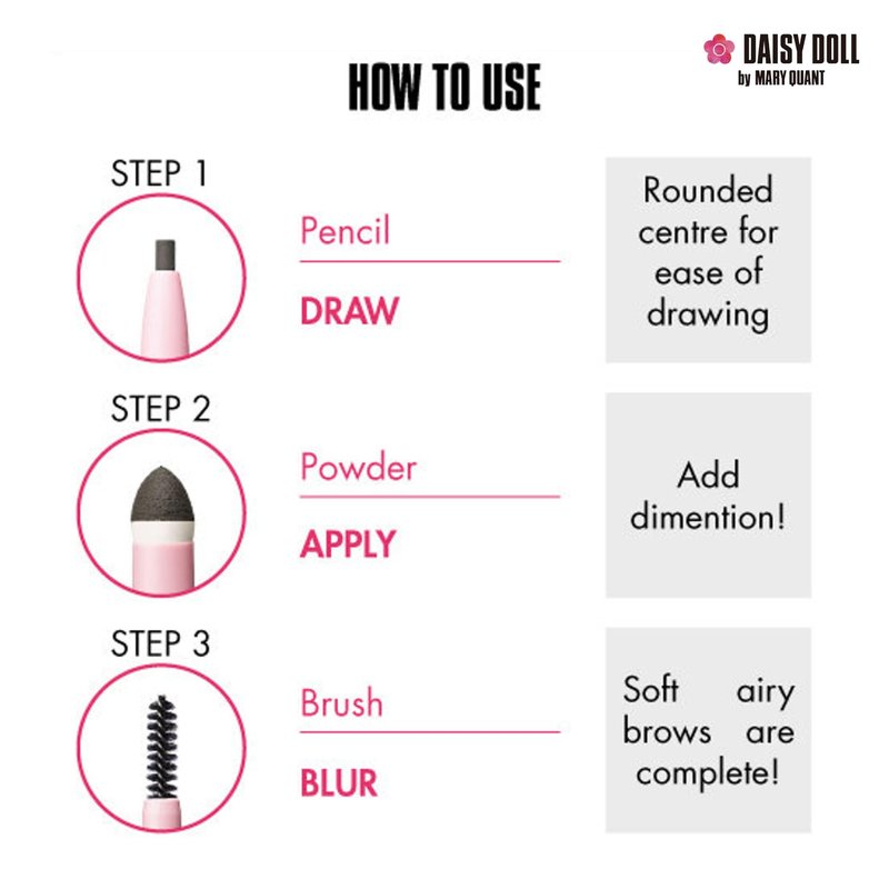 - 【3-in-1 Eyebrow Liner Kit】A 3-in-1 eyebrow liner that combines a pencil, powder, and a brush all in one! Perfect soft natural eyebrow makeup with Daisy Doll by Mary Quant from Japan.