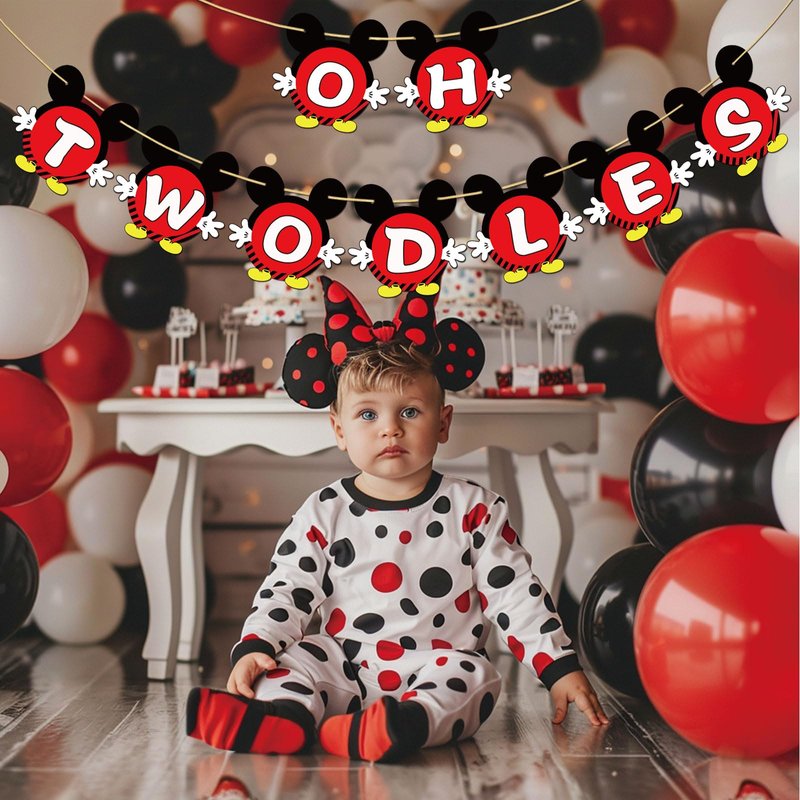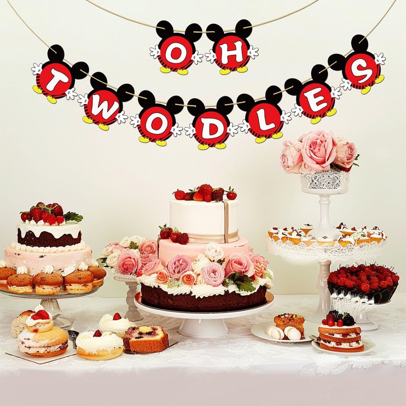 - Lovely Design:Special design with lots of elements and vivid colors, which has cute mouse birthday banner. Celebrate your little one's special day with this adorable Oh Twodles mickey Mouse Birthday Banner!