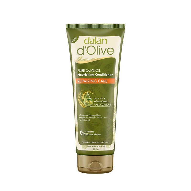 - Made from Aegean olive oil and wheat protein, Dalan d’Olive Hair Repairing Conditioner nourishes, strengthens and repairs damaged hair, preventing it from forming split ends.