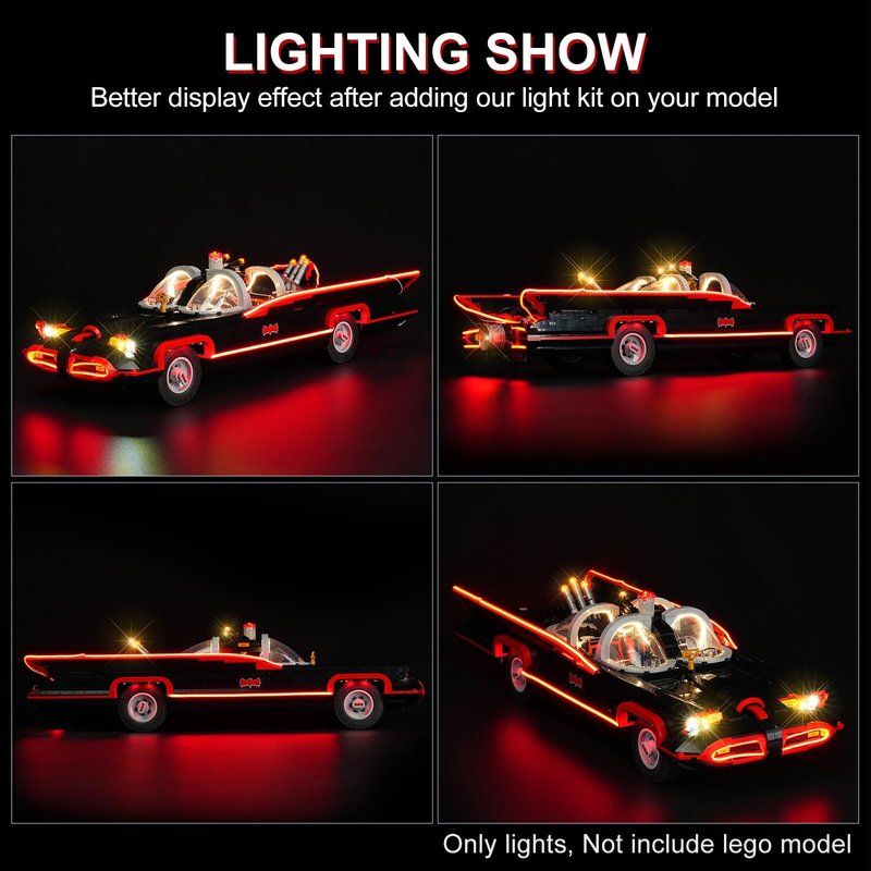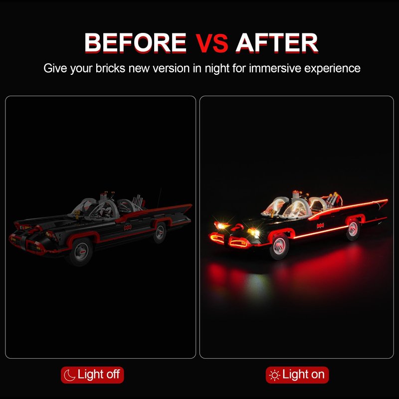 - [Unique Design] This LED light set is specially designed for Lego The Classic TV Series Batmobile 76328 set, let your model go from darkness to light and become a vibrant masterpiece.
