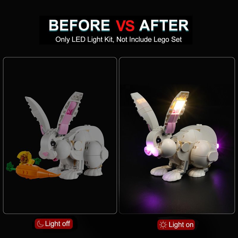 - 💡 [Exquisite Craftsmanship] This light is made of safe, reliable and environmentally friendly materials, each light uses the latest technology to illuminate every detail of the Lego Creator 3 in 1 White Rabbit 31133 different lights, so that the Lego block model set presents the best display effect.