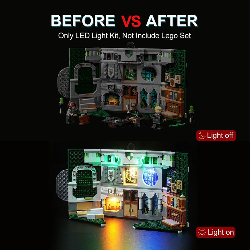 - 💡 [Unique Design] This LED light set is specially designed for Lego Harry Potter Slytherin House Banner Building Set 76410, let your LEGO model go from darkness to light and become a vibrant masterpiece.