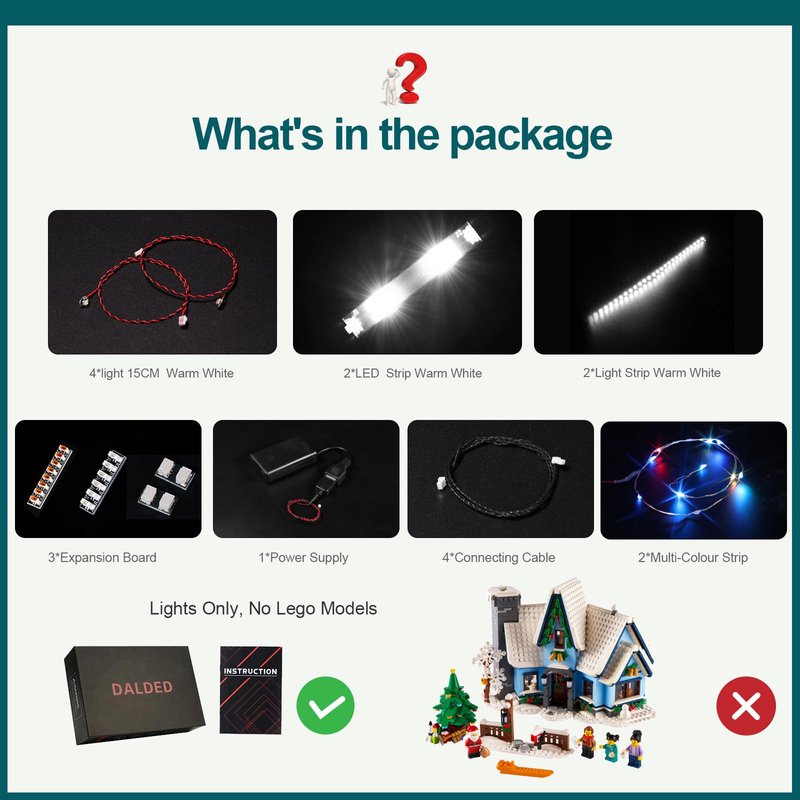 • 💎 [Exquisite Craftsmanship] This light is made of safe, reliable and environmentally friendly materials, each light uses the latest technology to illuminate every detail of the LEGO 10293 Icons Santa's Visit different lights, so that the LEGO block model set presents the best display effect.