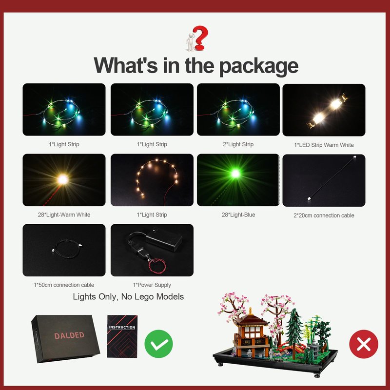 - 💡 [Unique Design] This LED light set is specially designed for Lego Tranquil Garden set, let your Lego model go from darkness to light and become a vibrant masterpiece.