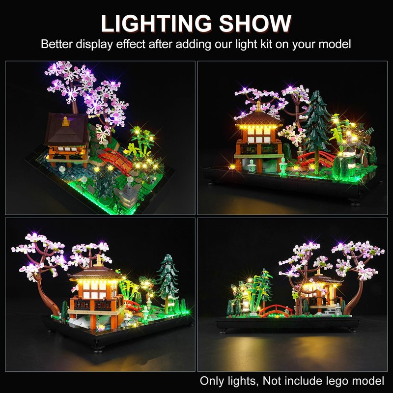 - 📱 [REMOTE VERSION] This LED light set is specially designed for Lego Tranquil Garden, the led lights set with remote, can control the light off and on, blinking or always on, a variety of modes can be adjusted, bring you a different experience.
