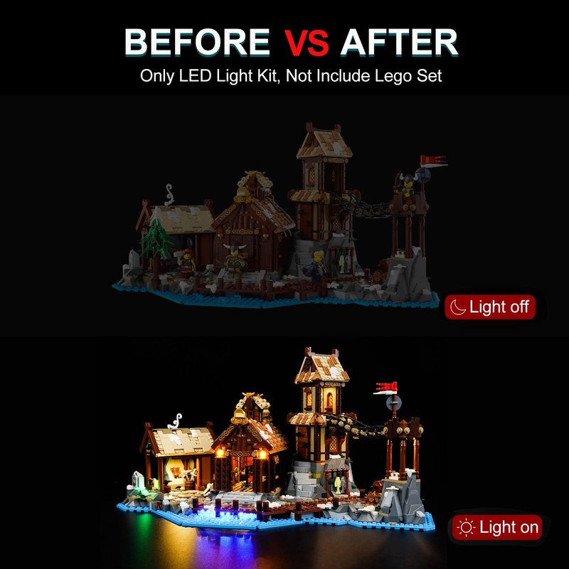 - 🏆 [Unique Design] This LED light set is specially designed for LEGO Ideas 21343 - Viking Village, let your LEGO model go from darkness to light and become a vibrant masterpiece.