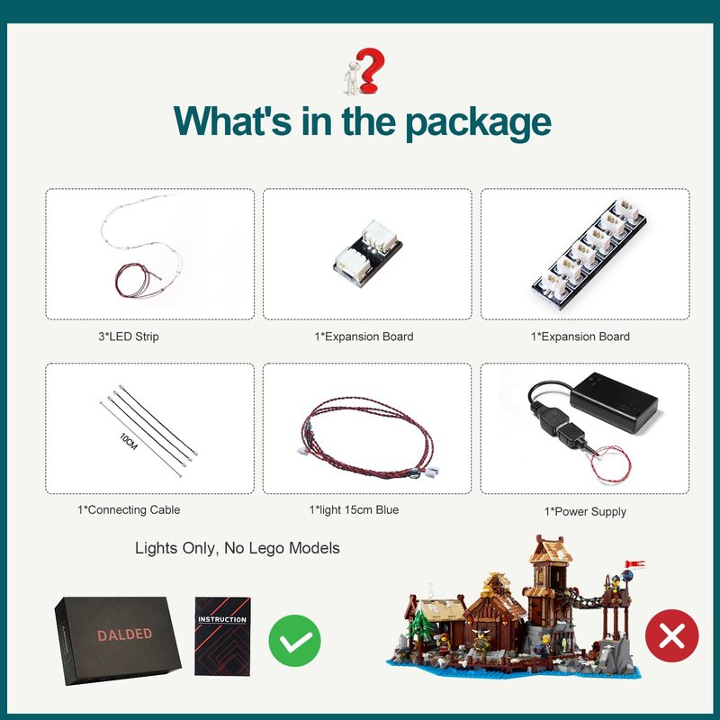 - 🎁【Best Gift Choice】Lego Viking Village light kit set is the best gift choice for kids or building block players who are interested in DIY, it can make your model become a fascinating and cool display, bring players a colorful and interesting exploration experience.