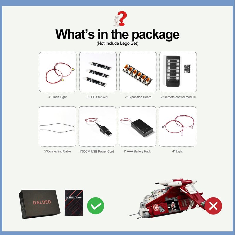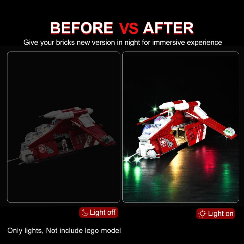 - 🎁【Best Gift Choice】Lego the clone wars coruscant guard gunship light kit set is the best gift choice for kids or building block players who are interested in DIY, it can make your model become a fascinating and cool display, bring players a colorful and interesting exploration experience.