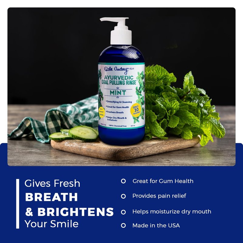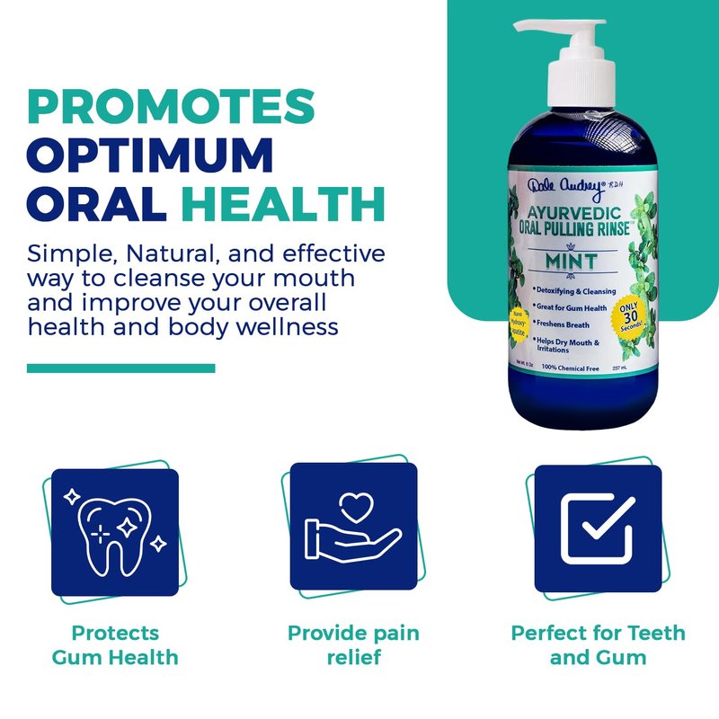 - AYURVEDIC SECRET TO ORAL HYGIENE: Dale Audrey R.D.H.’ Pulling oil for mouth gum health is a modernised version. This Oral Pulling Rinse, is perfectly blended with the finest herbs and extracts that remove toxins from the body while not disturbing the delicate balance of oral flora found in your mouth Discover the secret of ancient Ayurveda oral care; oil pulling mouthwash which is over 5,000 years old.