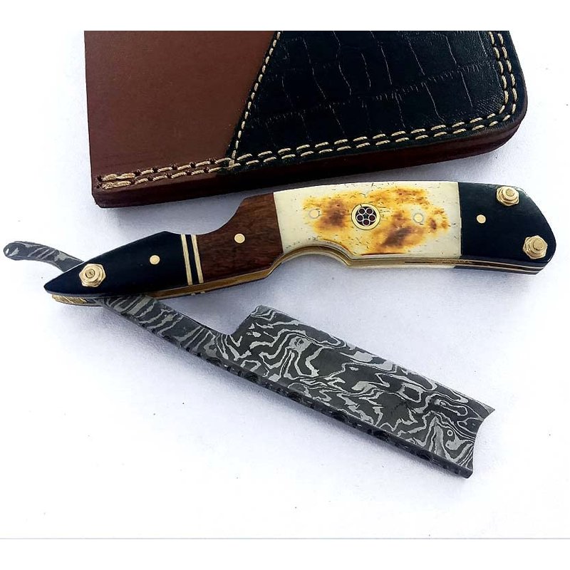 - Damascus steel blade straight razor.