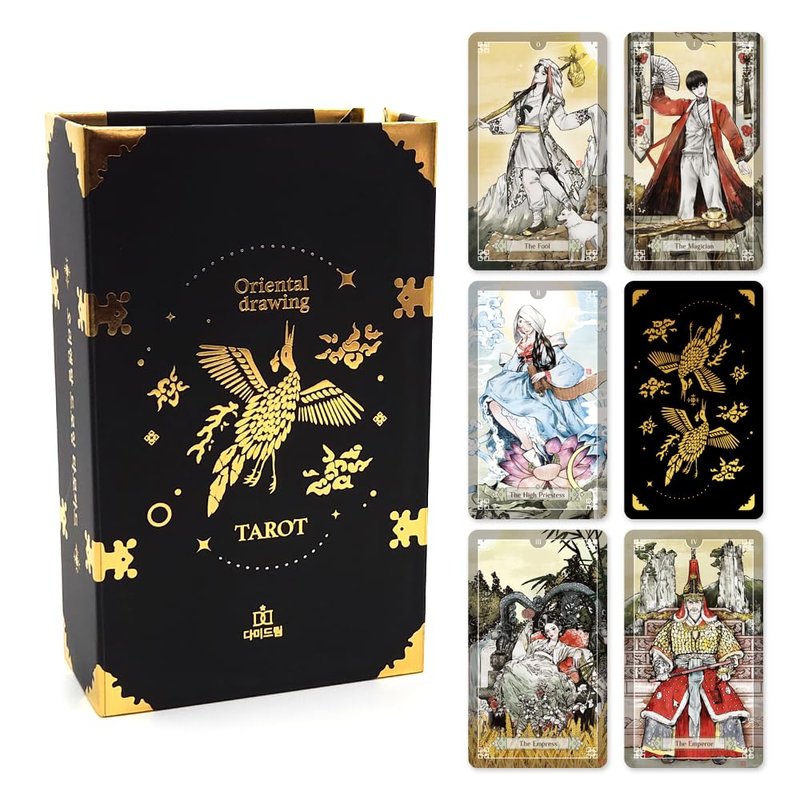 DAMY DREAM Korea Oriental Drawing Tarot Card, 78 Tarot Deck Foil Edition (Black Gold)