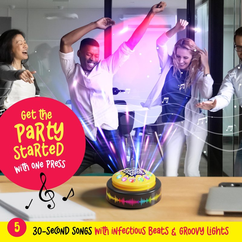 - PRESS TO PARTY: One press is all it takes to ignite the dance floor with five 30-second songs. Infectious beats and groovy lights are guaranteed to make you move!