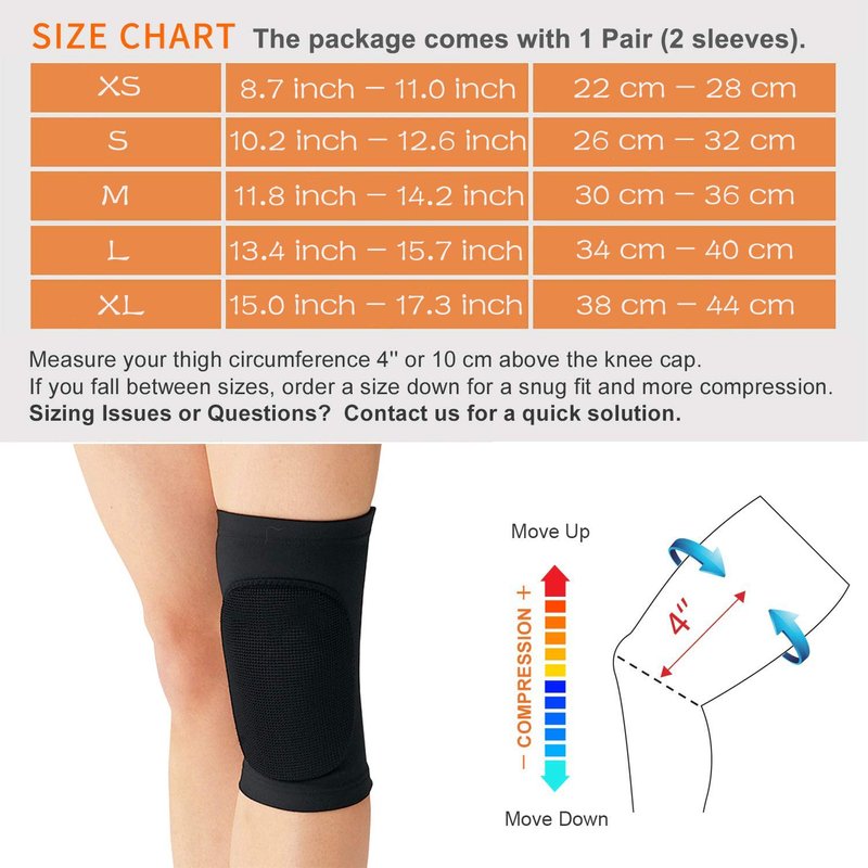 For correct size choose please measure around your thigh circumference(A in picture) above 4"/10 cm of your knee.