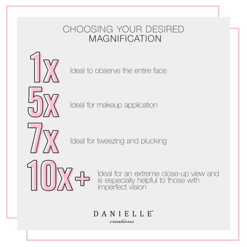 - OPTICAL QUALITY GLASS: All Danielle mirrors are precision made of the highest quality optical glass for a distortion-free image of unparalleled sharpness and clarity. Hold 1” to 2”s away from the magnified side of the mirror.
