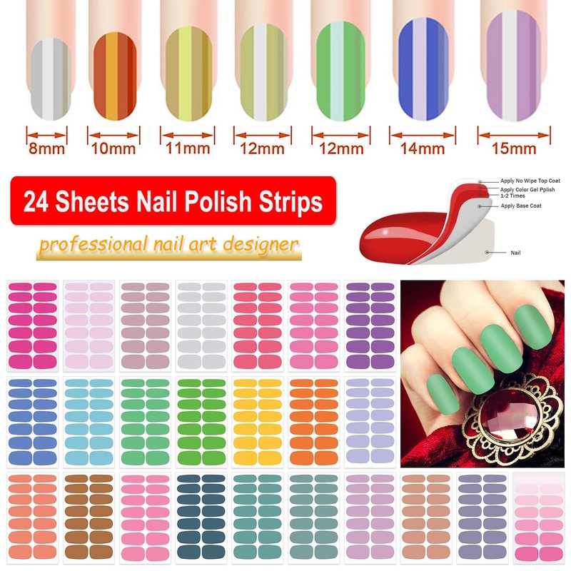 - [Package Included] You will get 24 sheets gel nail strips, each nail strips has 14 pieces nail tips and 7 sizes, to suitable for most people's nail size. the attached nail file and cuticle stick will help you finish the nail work better.