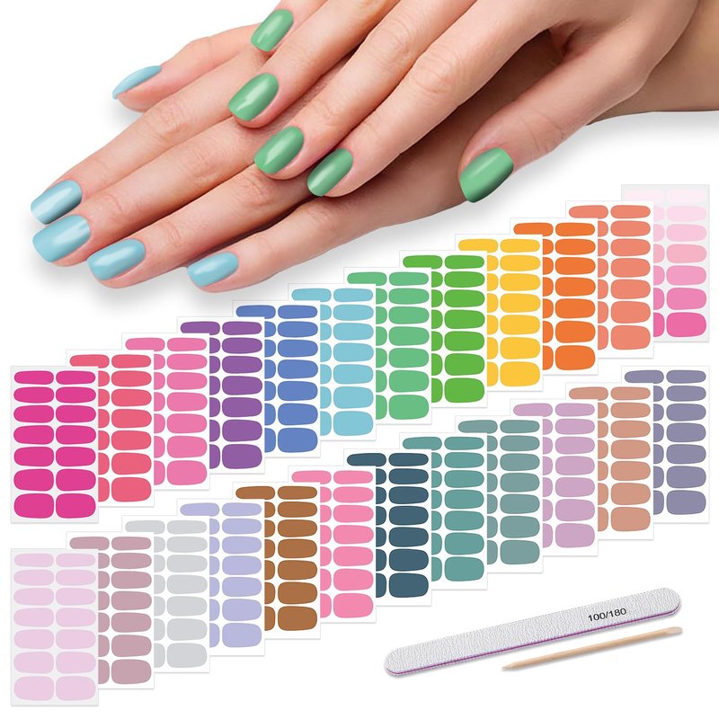 - [Quality & Durable] Our gel nail wraps made of quality material, safe and odorless, bringing no hurt to your nails, also the full nail strips is durable, not easy to bubble and DON'T REQUIRED UV LIGHT.