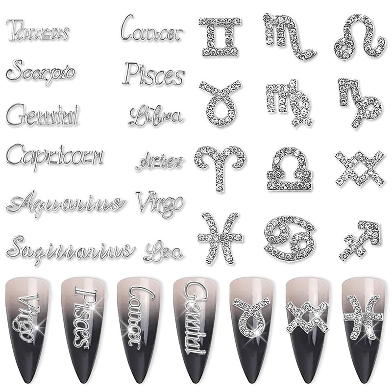- 【Zodiac Nail Art】 Fashionable zodiac, zodiac letters nails design, silver nail charms are made of high-quality alloy with a luxurious metallic color, durable and not easily fading. they can be reused and have a delicate and realistic design, making them the best choice for nail enthusiasts.
