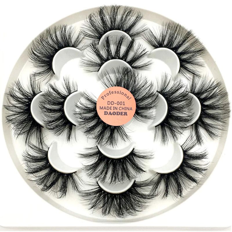 DAODER False Eyelashes 25mm Lashes Wispy Long 8D Mink Lashes Dramatic Volume Fluffy Eye Lashes Pack for Women 7Pairs Soft Reusable Fake Eyelashes