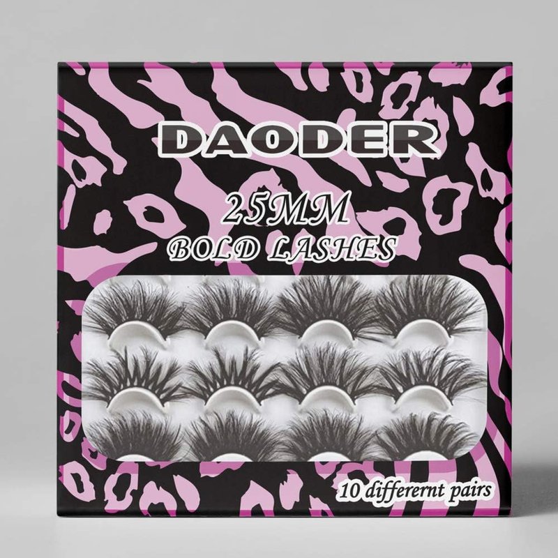 DAODER False Eyelashes 25MM Mink Lashes Dramatic Look Fluffy Long Fake Eyelashes Wispy 25mm False Lashes Strip 10 Variety Pairs Mixed for Halloween Bold Makeup