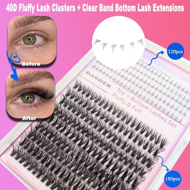 - ✅【Premium Quality Lash Clusters】- DAODER 40D D curl wispy lash clusters are made of imported PBT silk fiber, which is light-weight and soft without knots. The lash extensions feature a thin band for seamless integration, ensuring a natural look and comfortable wear. 40D wispy individual lash clusters give a natural eyelash extensions look; with 10-16mm mix length, you can DIY your preferred lash look for various occasions