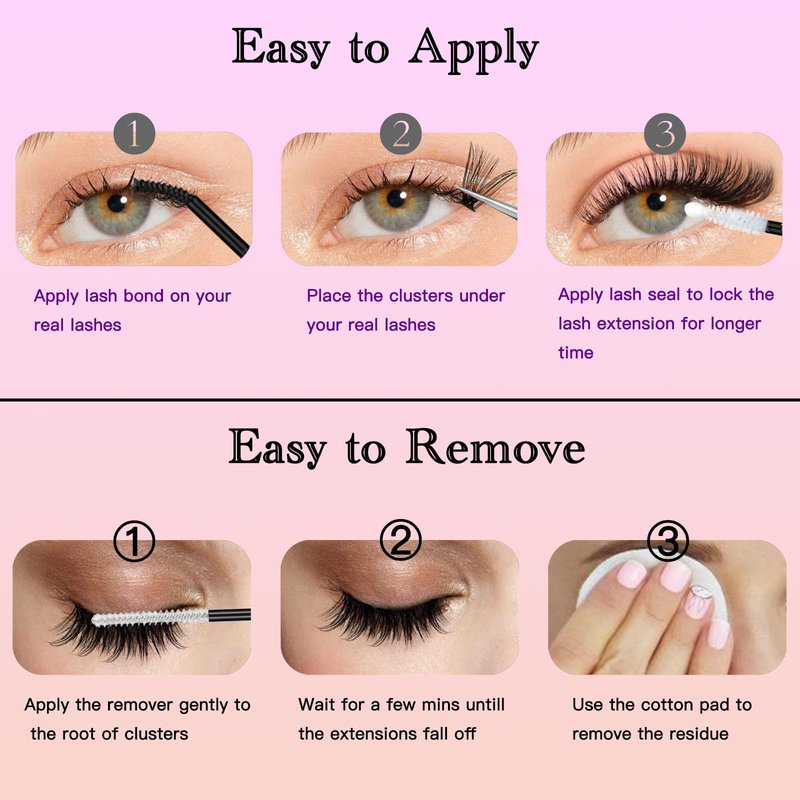 - ✅【Risk-Free Shopping】 - DAODER lash clusters kit with bottom lashes is a must-have for anyone looking to achieve luxurious lash extension look at home. Say goodbye to expensive salon appointments and hello to effortless glamour with the DIY eyelash Extension Kit. DAODER promise to offer replacement or full refund unconditionally if the lash clusters kit arrives damaged or defective