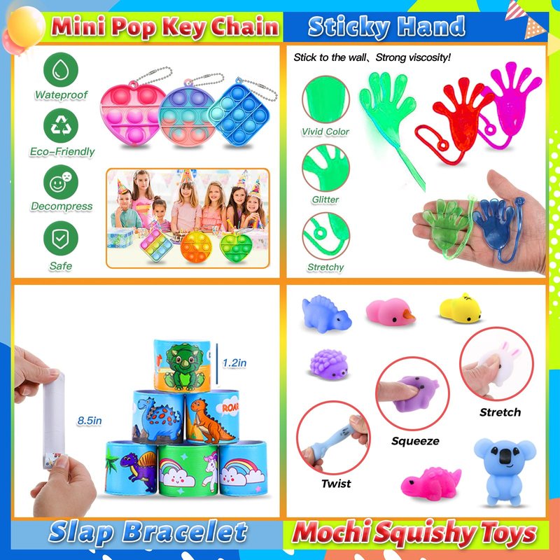 - 🎈【SAFETY & QUALITY】Our party favor toys are made with kids' happiness and safety as top priority. Made from top quality materials, these toys are sturdy and durable for endless play. Each toy is rigorously tested for safety and meets U.S. regulatory standards to ensure peace of mind while kids have fun!