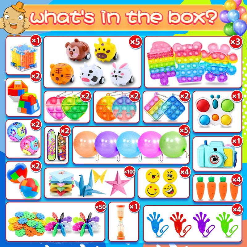 - 🎁【GIFTS AND REWARDS】Packaged in an exquisitely designed box, each toy is thoughtfully chosen to delight children. Ideal for birthday gift, classroom rewards, carnival prizes, treasure box toys and more, these toys make perfect party favors, piñata stuffers . Whether indoors