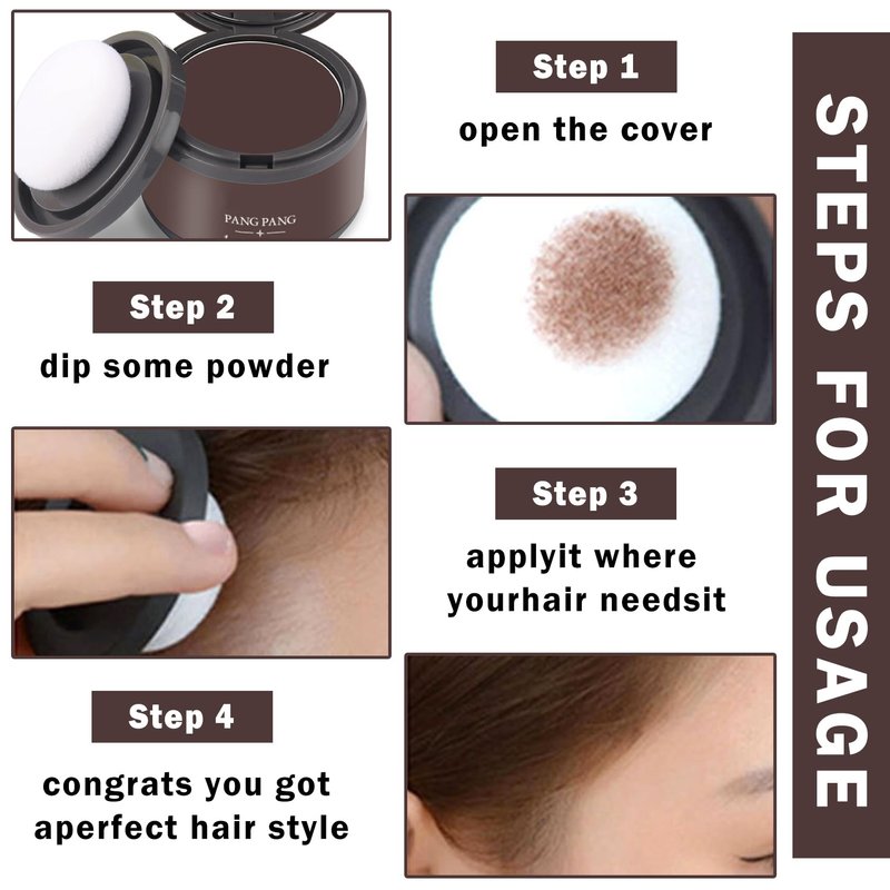 - 【Easy to Use】Just remove the puff, dip in an appropriate amount of root grooming powder, gently pat the hairline powder along the hairline, fill in the color in the area that needs to be covered, and get fluffy hair. Can be washed off with shampoo.