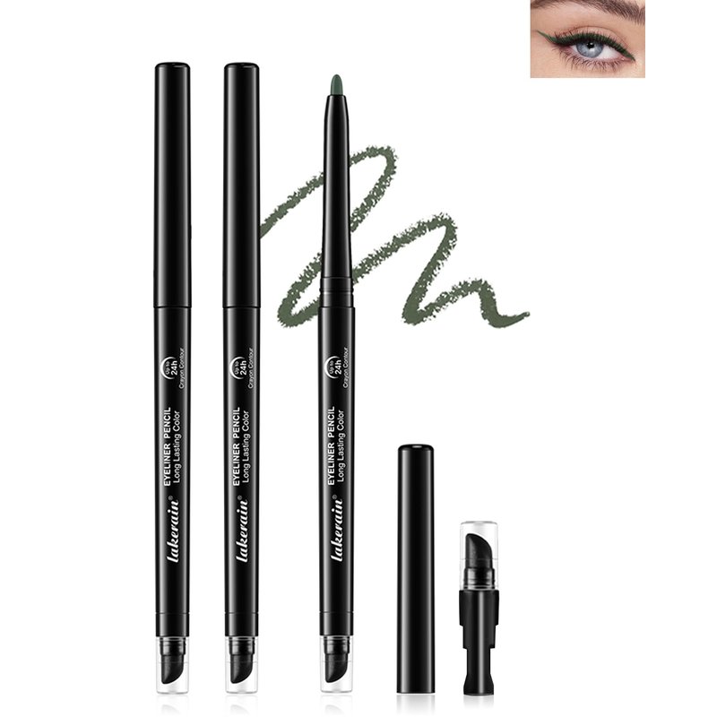 Dark Green Waterproof Eyeliner Gel Pencil- 2Pcs Smudge Proof Long Lasting Retractable Eyeliner Pen, Creamy Eyeliner Waterline, Smoky Makeup Eye Liner Pencils for Women, Built-In Sharpener & Smudger-06