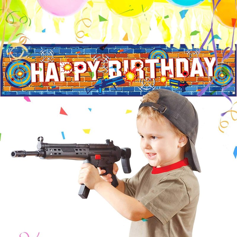 - Dart battle themed party supplies: dart battle happy birthday banner is a good option to decorate your dart battle themed birthday party; Take entertaining and shareable party photos of your friends and family