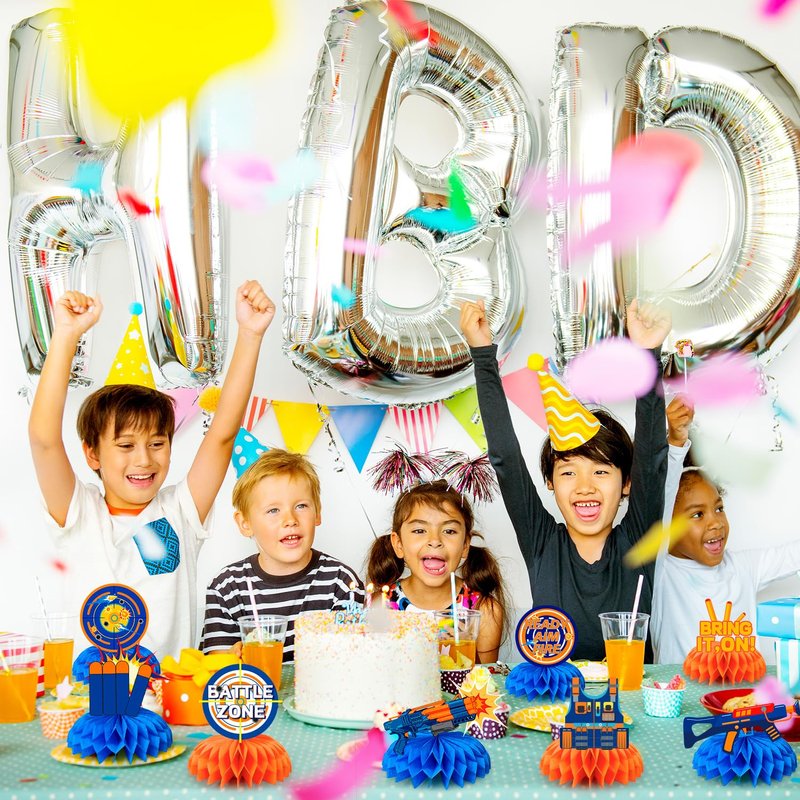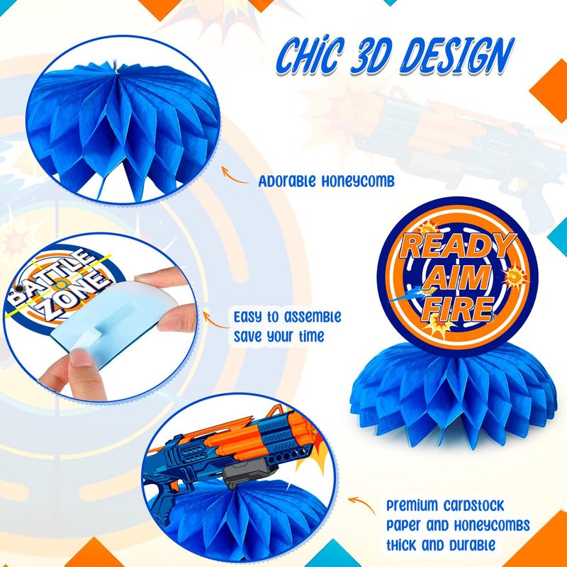 - Wide Applications: The dart battle honeycomb centerpieces in the dart gun birthday party decorations is suitable for dart war party, dart war birthday party, dart gun party, game party, shooting competition and other indoor or outdoor parties.
