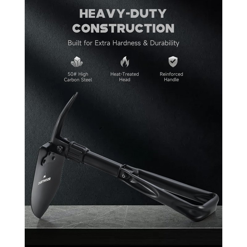 - PREMIUM MATERIALS: Carefully constructed with high-carbon steel, this heat-treated mini folding camp shovel is built to last with rust-resistance & anti-deformation. The tactical military shovel is a rugged tool for digging, shoveling, sawing, chopping, and entrenching