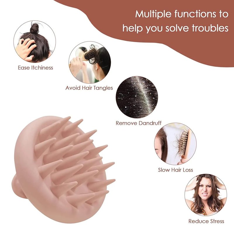 Suitable for all hair types: Whether you have thick or thin, curly or straight, dry or wet hair, this scalp massager hairbrush can be your go-to tool. If you're dealing with dandruff and an itchy scalp, our massage brush can replace your nails and protect them from damage. Less hair oil, less shampoo, and conditioner for a healthier approach: Use a small amount of shampoo to create a richer lather. Massage your scalp while deeply cleansing your hair to relieve the day's stress. After applying oil, follow a soothing manual scalp massage. The change begins right now. The perfect gift for the entire family: Men, women, children, and even pets can enjoy the benefits of this gentle shampooing brush, leaving your hair and scalp cleaner than ever. It's the ideal holiday gift for the whole family. Lightweight and easy to use: Scalp massager hairbrushes are made of soft silicone material with an ergonomic grip, ensuring a comfortable hold with grooves for your fingers and thumb. It fits perfectly in your palm and is easy to handle, whether you're left or right-handed. Your personal spa experience: This gentle scalp massaging machine helps stimulate blood circulation, relax scalp muscles, and aid in quicker headache relief. You can use it anytime and anywhere, in the comfort of your own home.