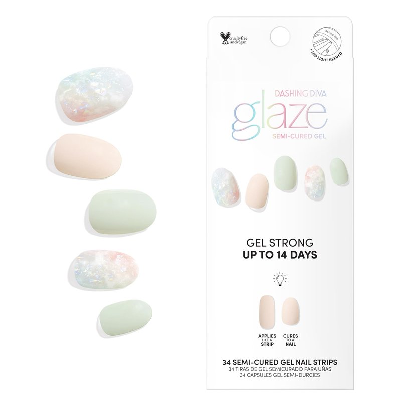 - LONG LASTING SEMICURED GEL STRIPS: GLAZE easy-to-apply gel nail strips cure under the light of our LED mini lamp in just 45 seconds and deliver full-cover, sculpted perfection. Semi-cure your way to maximum shine and real salon gel strength for up to 14 days