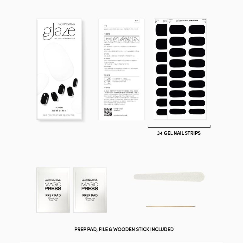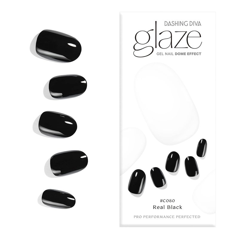 Dashing Diva Glaze Nail Strips - Real Black | Works with Any LED Nail Lamp | Long Lasting, Chip Resistant, Semicured Gel Nail Strips | Contains 34 Salon Quality Black Nail Wraps, 1 Prep Pad, 1 Nail File