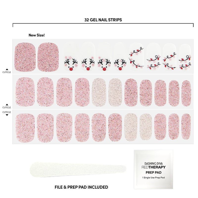 - LIGHT SHOW: The red nose reindeer will light up the night - And your mani! White & light pink glittered gel nail strips featuring reindeer icons and champagne glitter with a glossy, high-shine finish
