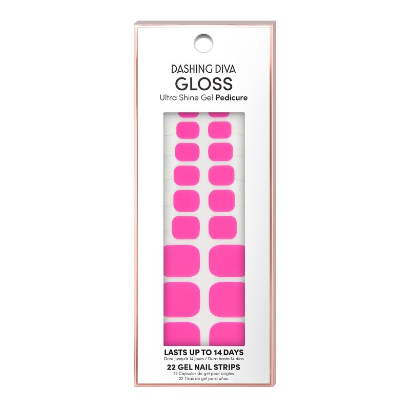 Dashing Diva Gloss Pedicure Nail Strips - Shocking Pink | UV Free, Chip Resistant, Long Lasting Gel Pedicure Stickers | Contains 22 Nail Wraps, 1 Prep Pad, 1 Nail File