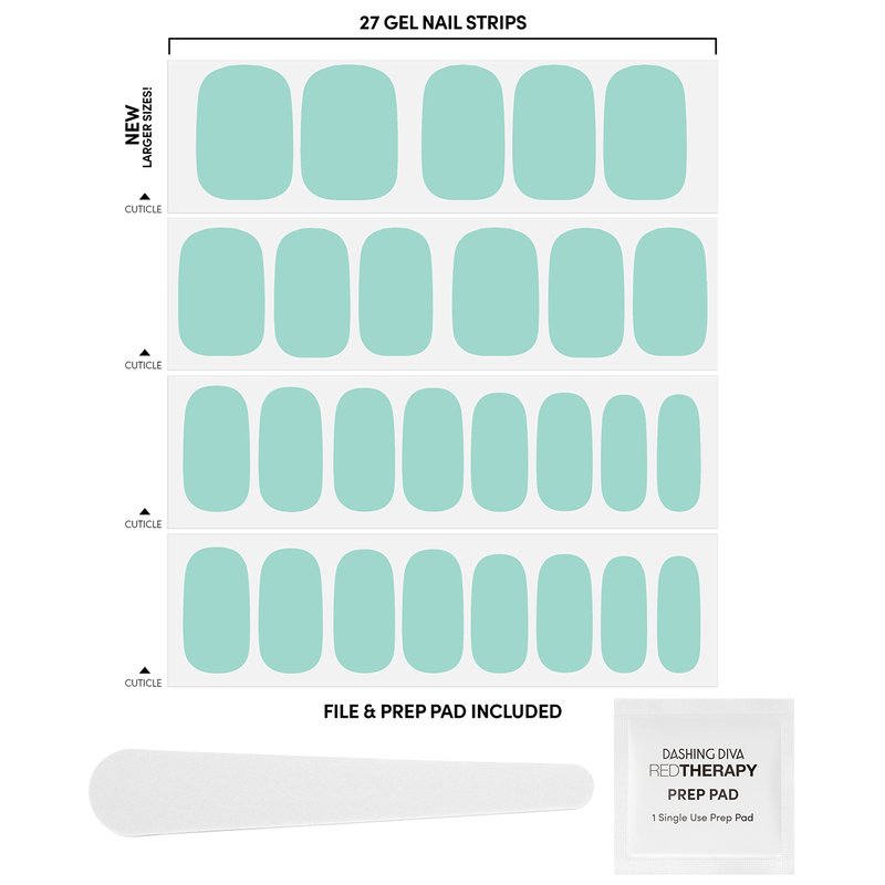 Dashing Diva Nail Strips - Iced Mint | UV Free, Chip Resistant, Long Lasting Gel Nail Stickers | Contains 27 Nail Wraps, 1 Prep Pad, 1 Nail File