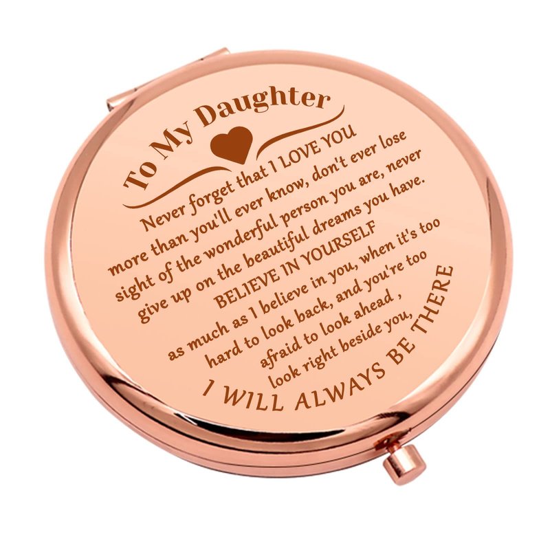 - Birthday Gift for Daughter from Mom:Perfect gift for daughter from parent,birthday gift for daughter,girls,teen girls,adult daughters.daughter-in-law,goddaughter,teenage girl,granddaughter gift from grandparents.Our compact mirror is a great gift idea reminding her how beautiful she is wherever she goes. Small mirror gift in purse or pocket as a great reminder gift. Keep the parent's word in mind.