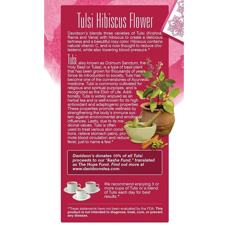 Davidson's Organics, Tulsi Hibiscus Flower, 25-count Tea Bags, Pack of 6