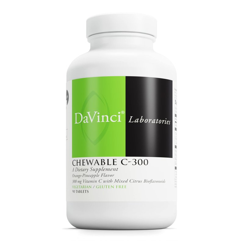 DaVinci Labs Chewable C-300 - Supplement to Support Immune Health, Cholesterol and Collagen Production - With Vitamin C, Pectin and More - Gluten-Free - Orange Pineapple Flavor - 90 Vegetarian Tablets