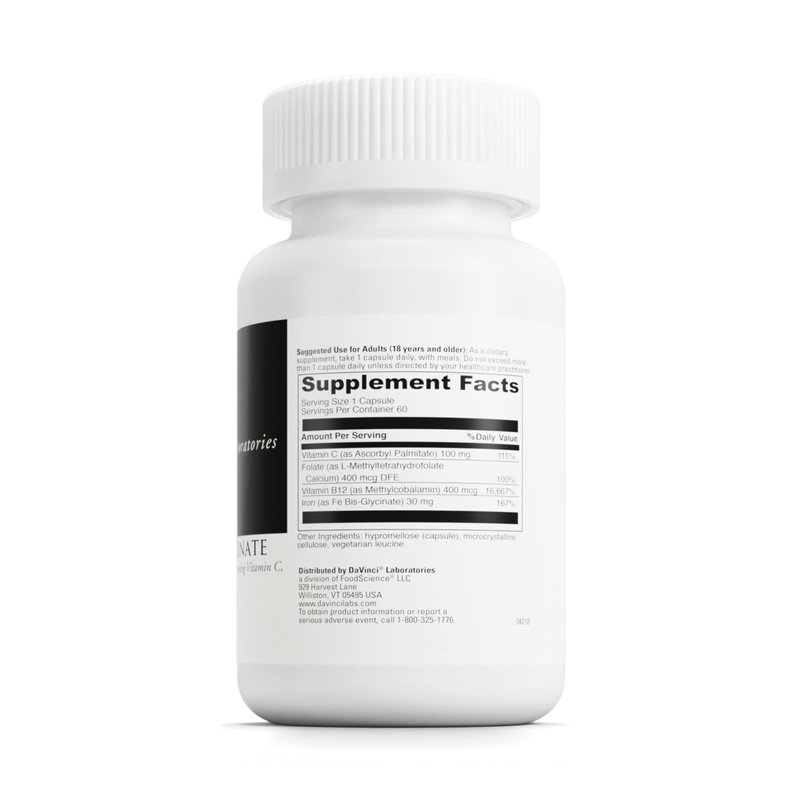 DaVinci Labs Iron Bis-Glycinate - Gentle Iron Supplement for Women & Men - Help Support Hemoglobin Production & Normal Energy Levels with Vitamin C & More* - Vegan - 60 Vegetarian Capsules