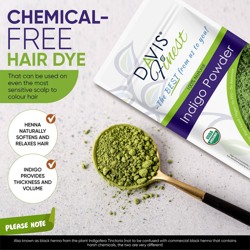 Davis Finest Indigo Powder for Hair Dye, Natural Black Henna Hair Colour, Chemical-Free, Ammonia-Free Hair/Beard Dye 100g