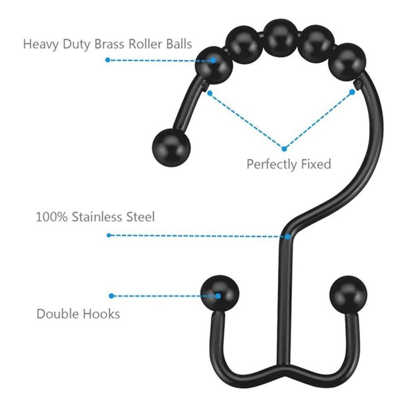 - Set of 12 Double Hooks: Sold in a set of 12 double sided shower curtain hooks, it is a great way to solve the problem of just removing the shower curtain or liner.