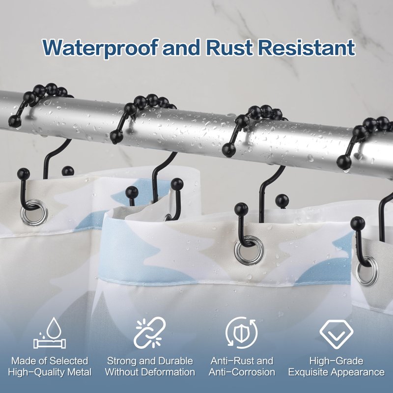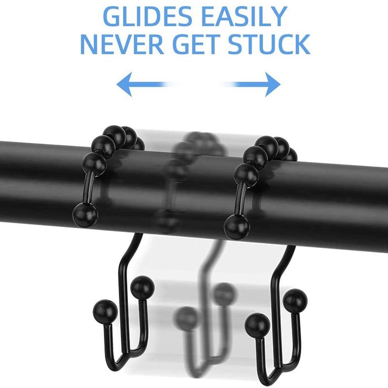 - Premium Quality Stainless Steel: The black shower curtain hooks are made of brass and stainless steel, can be used for years in a bathroom environment without rust or corrosion or limescale, easy to keep your bathroom clean, and ensuring long-lasting durability.