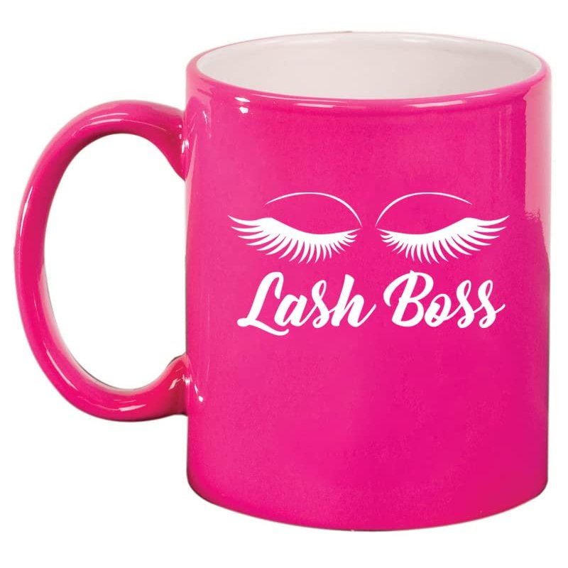 Daylor Lash Boss Makeup Lash Extension Artist Ceramic Coffee Mug Tea Cup Gift (11oz Hot Pink)