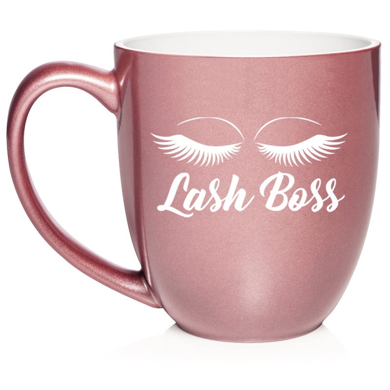 Daylor Lash Boss Makeup Lash Extension Artist Ceramic Coffee Mug Tea Cup Gift (16oz Rose Gold)