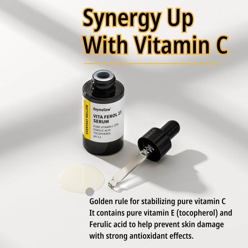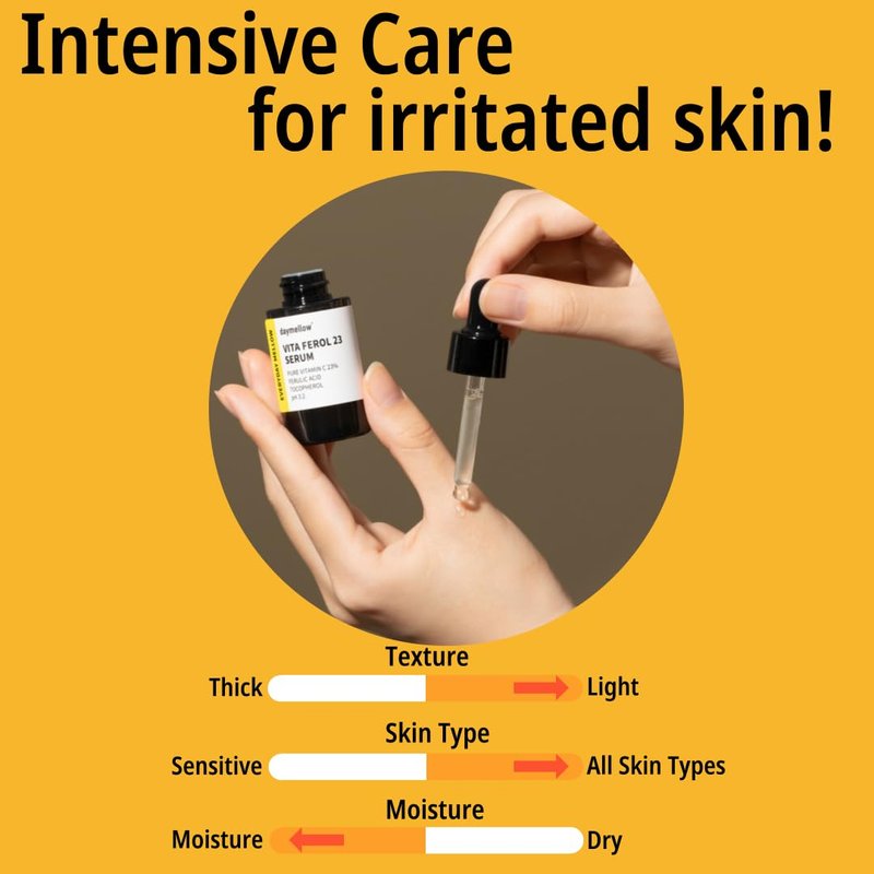 daymellow Vita Ferol 23 Serum 0.67fl.oz/20ml, Vitamin C Face Serum, Vitamin C 23%, Centella, Glutathione, Brightening, for Sensitive Skin, Acne, Dark Spots, Uneven Skin Facial Serum Korean Skincare