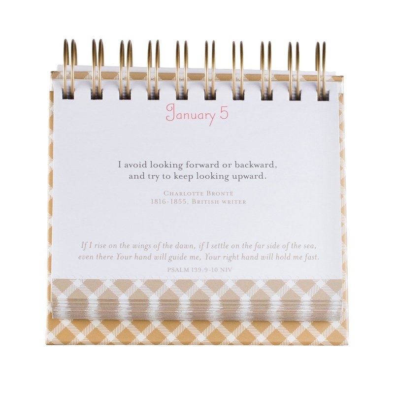 - Each Scripture or positive affirmation page features the month and date (ex: October 19) so you can start your daily inspiration any time of year. The durable padded hardcover and spiral binding makes these perpetual calendars easy to flip year after year.
