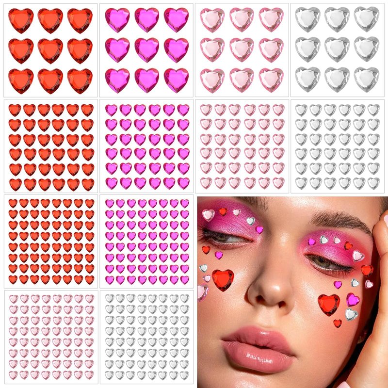 - Gentle Adhesion for Makeup Removal: Made from sturdy acrylic, these heart-shaped jewels come with a light self-adhesive designed for easy removal,making them ideal for short-term use on your face, hair, and body. For a more long-lasting hold, especially for crafts, we recommend using additional glue to ensure they stay in place